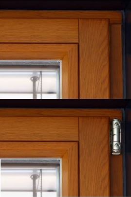 Komplett verdeckt liegende Beschlagtechnik, das heißt die Innenoptik des Aluminium-Holz-Fensters wird nicht durch Beschlagteile gestört (ausschließlich bei rechtwinkligen Fenstern).